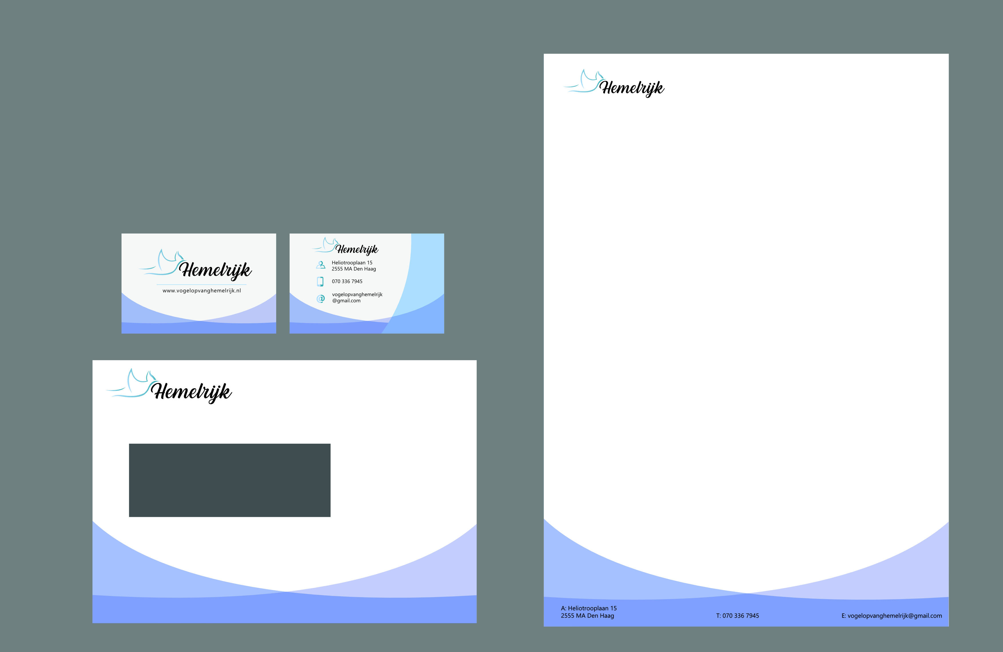 'T Hemelrijk started 16 years ago as a bird shelter. However in present day, they grew out to an animal shelter.They mainly focus on wildlife animals, but someytimes domesticated animals come in too. In the time I worked on this project they were still only focussed on birds, which is what my designs reflect. The assignment was to create an new corporate design for them and this is the first project where I was really proud of my work.